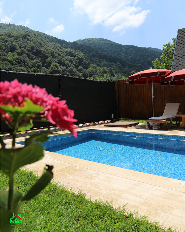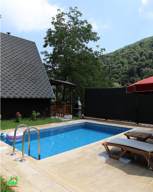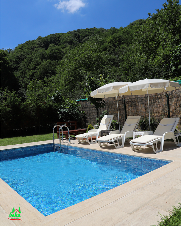 Sapanca Beka Bungalov – Muradiye Alkolsüz havuzlu Suit Bungalov, Sapanca Muradiye bölgesinde yer alıyor. Tesis 2 adet havuzlu bungalovdan oluşmaktadır. Tesiste alkol tüketilmemektedir. Tesis doğa içerisinde olup, cıvıl cıvıl kuş sesleriyle adeta huzur dolu bir tatile ihtiyacınız varsa mutlaka uğramalısınız. 4 yetişkin konaklayabilmektedir. Mini buzdolabı ve diğer mutfak araç gereçleri, salonda açılabilir L koltuk, tv, klima ve wc,banyo, bahçede özel yüzme havuzu, ateş çukuru, bahçe mobilyası, barbekü, salıncak, çaycı, kahve cezvesi, çay kahve seti, kaşık, çatal , bıçak , tabak, çay bardağı, kahve bardağı, buzdolabı bulunmaktadır.
